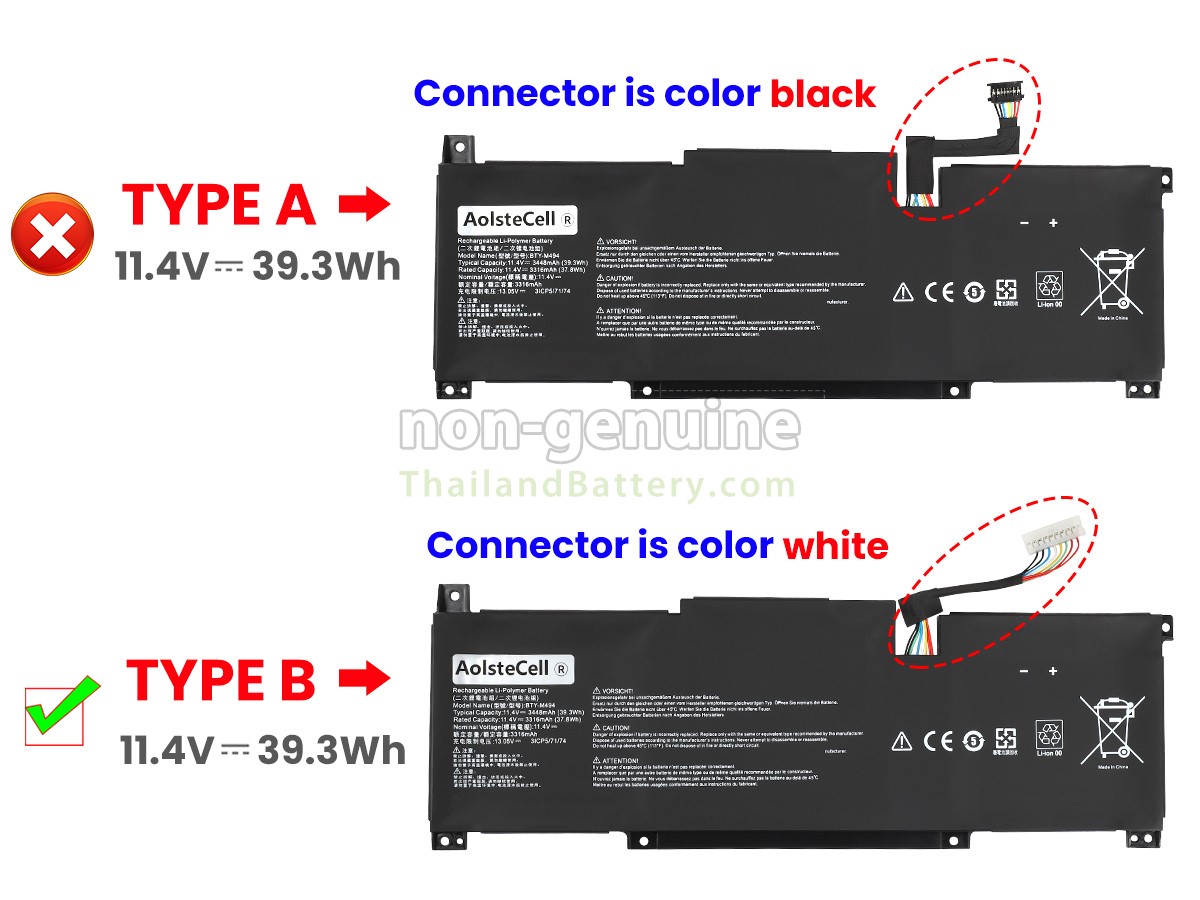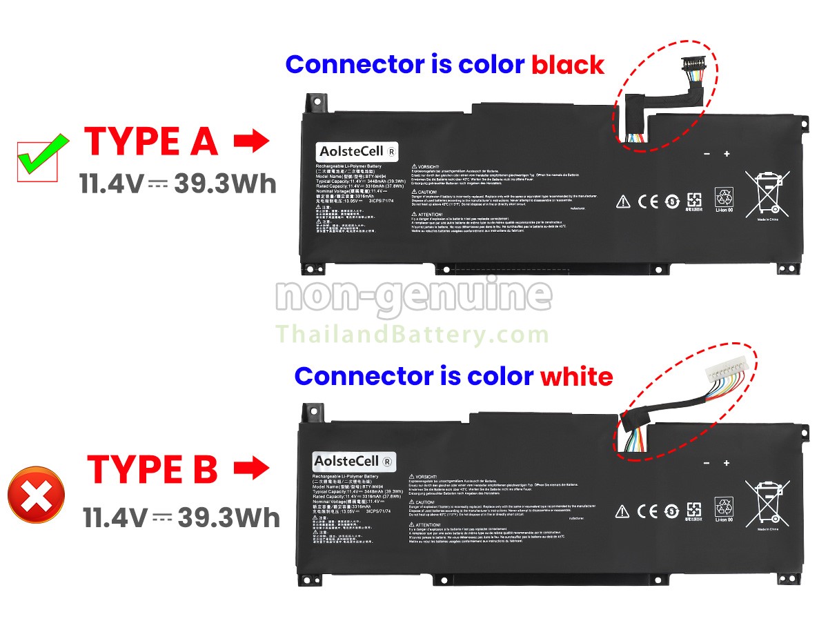 There are 2 types of batteries named "BTY-M491", please check the connector of your old battery before placing an order, make sure it is the same as ours. 3 เซลล์ | 52.4Wh MSI MODERN 14 C11M-208US