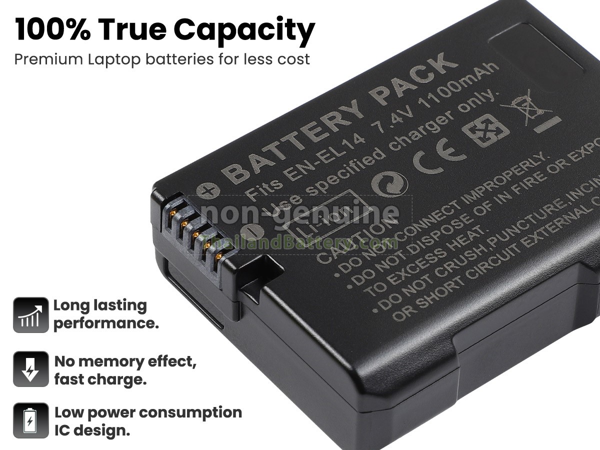แบตเตอรี่ทดแทน Nikon D5200 นี้ มีสเปคเดียวกับผู้ผลิตดั้งเดิม สามารถใช้งานได้กับอุปกรณ์ Nikon ของท่านได้ 100% ฟังก์ชันและประสิทธิภาพการใช้งานของแบตเตอรี่ยังคงเท่ากับ D5200 รุ่นเดิม