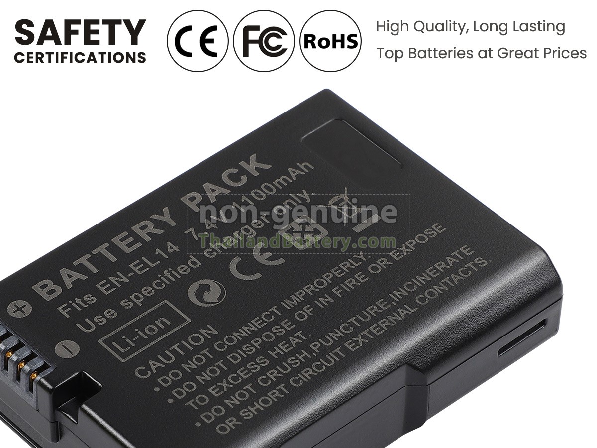 แบตเตอรี่ Nikon D5200 ทั้งหมดได้ผ่านการรับรองความปลอดภัยจาก TISI CE และ UL ตามมาตรฐานสากล นอกจากนี้ ก่อนที่สินค้าออกจากโรงงานต้องผ่านการตรวจสอบอย่างเข้มงวดเพื่อปกป้องการใช้งานที่ปลอดภัยของท่าน!