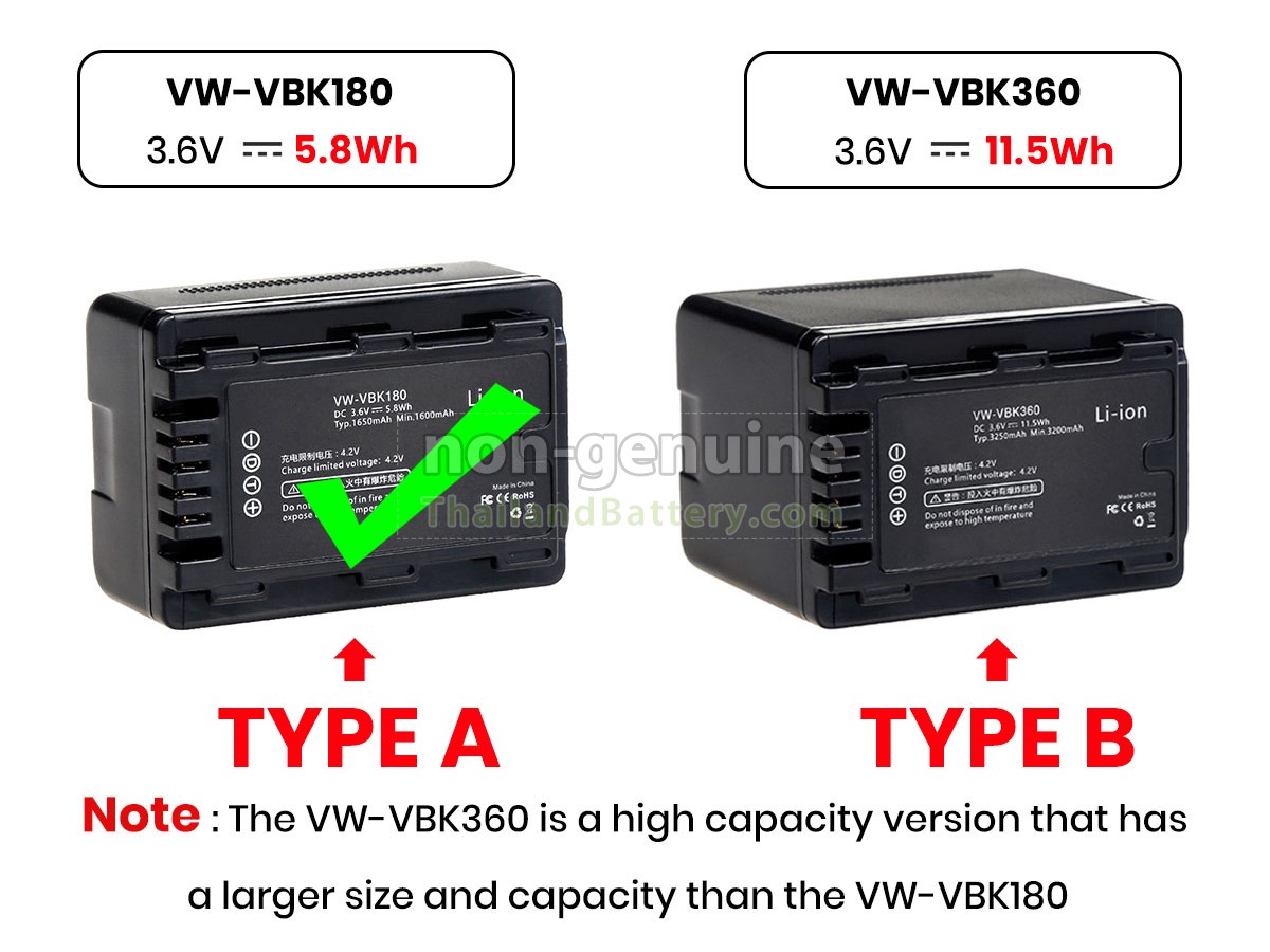 2 เปรียบเทียบแรงดันไฟฟ้าและความจุของแบตเตอรี่กับแบตเตอรี่ Panasonic VBK360 ของเรา และตรวจสอบว่าอินเทอร์เฟซและรูปภาพของแบตเตอรี่เหมือนกันกับภาพในเว็บไซต์ของเราหรือไม่