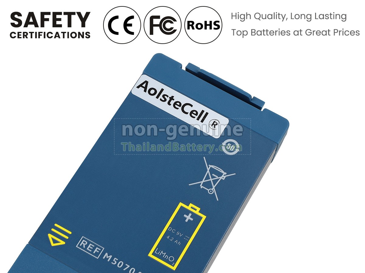 แบตเตอรี่ทดแทน Philips HEARTSTART ONSITE AED M5066A นี้ มีสเปคเดียวกับผู้ผลิตดั้งเดิม สามารถใช้งานได้กับอุปกรณ์ Philips ของท่านได้ 100% ฟังก์ชันและประสิทธิภาพการใช้งานของแบตเตอรี่ยังคงเท่ากับ HEARTSTART ONSITE AED M5066A รุ่นเดิม