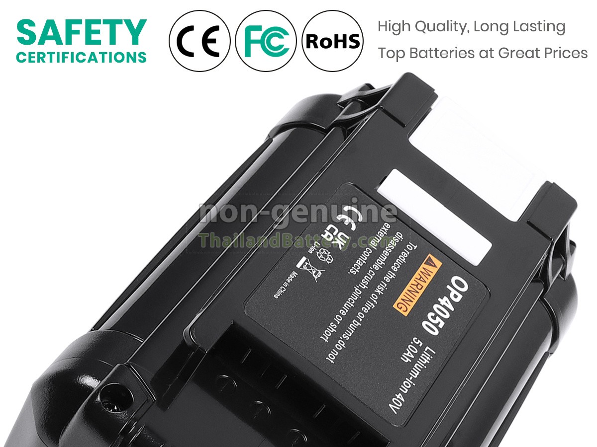 แบตเตอรี่ Ryobi OP40261 ทั้งหมดได้ผ่านการรับรองความปลอดภัยจาก TISI CE และ UL ตามมาตรฐานสากล นอกจากนี้ ก่อนที่สินค้าออกจากโรงงานต้องผ่านการตรวจสอบอย่างเข้มงวดเพื่อปกป้องการใช้งานที่ปลอดภัยของท่าน!