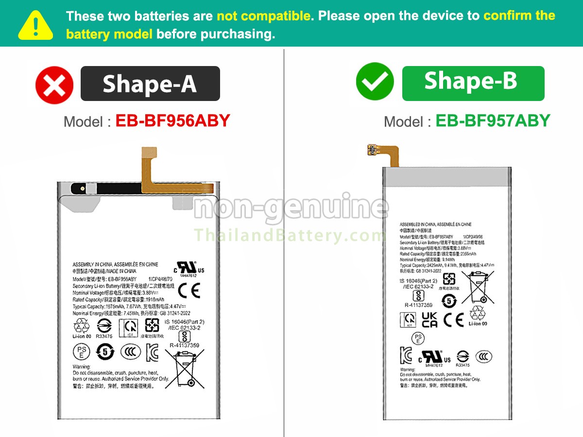 2 เปรียบเทียบแรงดันไฟฟ้าและความจุของแบตเตอรี่กับแบตเตอรี่ Samsung GALAXY Z FOLD 6 5G ของเรา และตรวจสอบว่าอินเทอร์เฟซและรูปภาพของแบตเตอรี่เหมือนกันกับภาพในเว็บไซต์ของเราหรือไม่