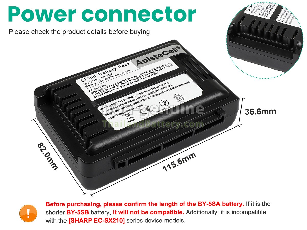 2 เปรียบเทียบแรงดันไฟฟ้าและความจุของแบตเตอรี่กับแบตเตอรี่ Sharp EC-SX20 ของเรา และตรวจสอบว่าอินเทอร์เฟซและรูปภาพของแบตเตอรี่เหมือนกันกับภาพในเว็บไซต์ของเราหรือไม่