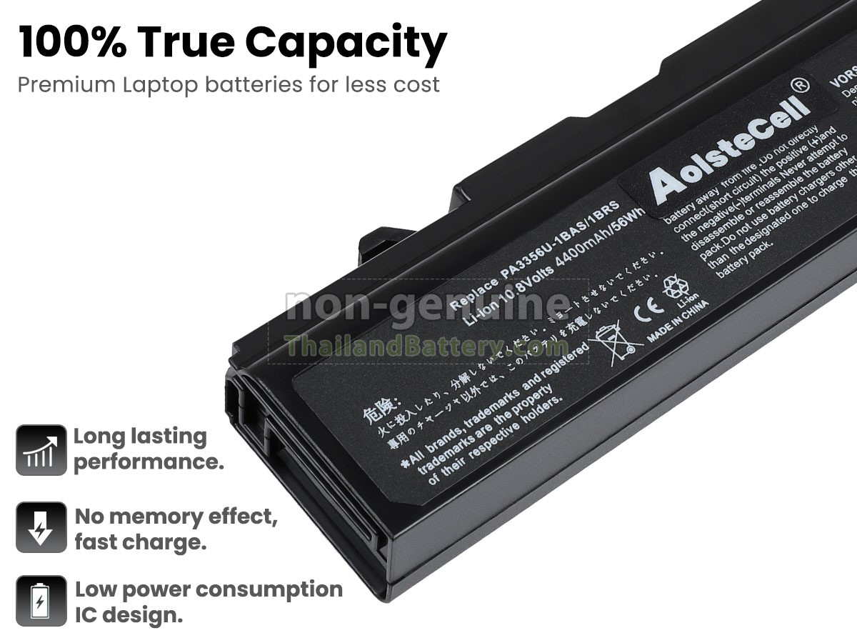 แบตเตอรี่ Toshiba Tecra M5 แต่ละชิ้นทำจากลิเธียมไอออนระดับ A+ คุณภาพสูง ซึ่งเป็นที่ดั้งเดิมจาก Samsung Panasonic และ LG ชิปวงจรอัจฉริยะ วัสดุสามารถทนต่ออุณหภูมิสูงและการสึกหรอ เปลือกแบตเตอรี่ ABS + PC วัสดุที่เป็นมิตรกับสิ่งแวดล้อม ประสิทธิภาพสูง รับรองความปลอดภัยด้วย